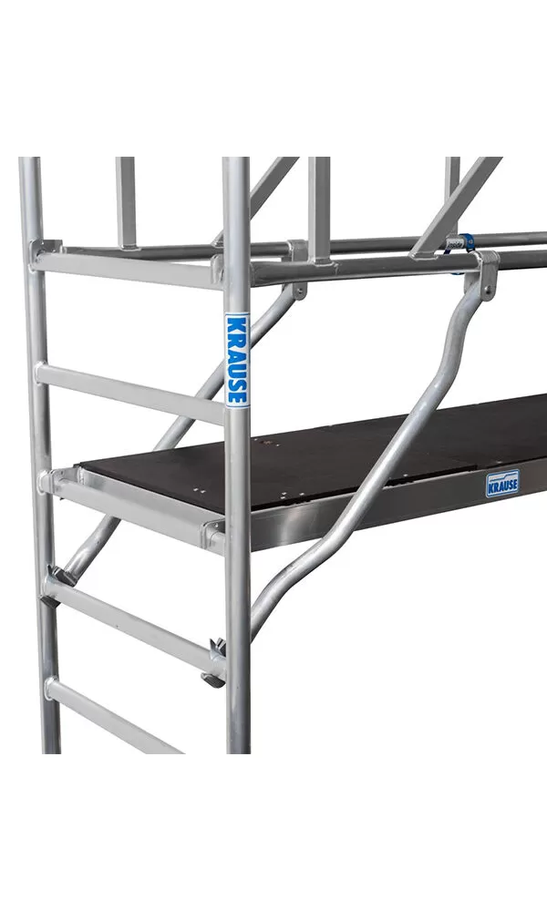 • Upevnění úhlopříčných výztuh, zábradelních tyčí i podlážek je řešeno patentovaným tvarovým a současně svěrným spojením. Zajištění spoje se provádí jednoduše "zaklepnutím" tvarové západky kladívkem. Uvolnění spoje pak jednoduchým "vyklepnutím"