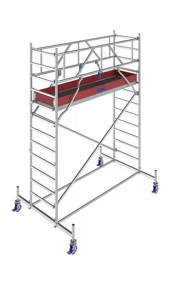 • Pojízdné hliníkové lešení třídy lešení 3 (zatížení 200 kg/m2 plochy podlážky), rozměr pracovní plochy délka 2,50 m x šířka 0,75 m, max. zatížení 300 kg