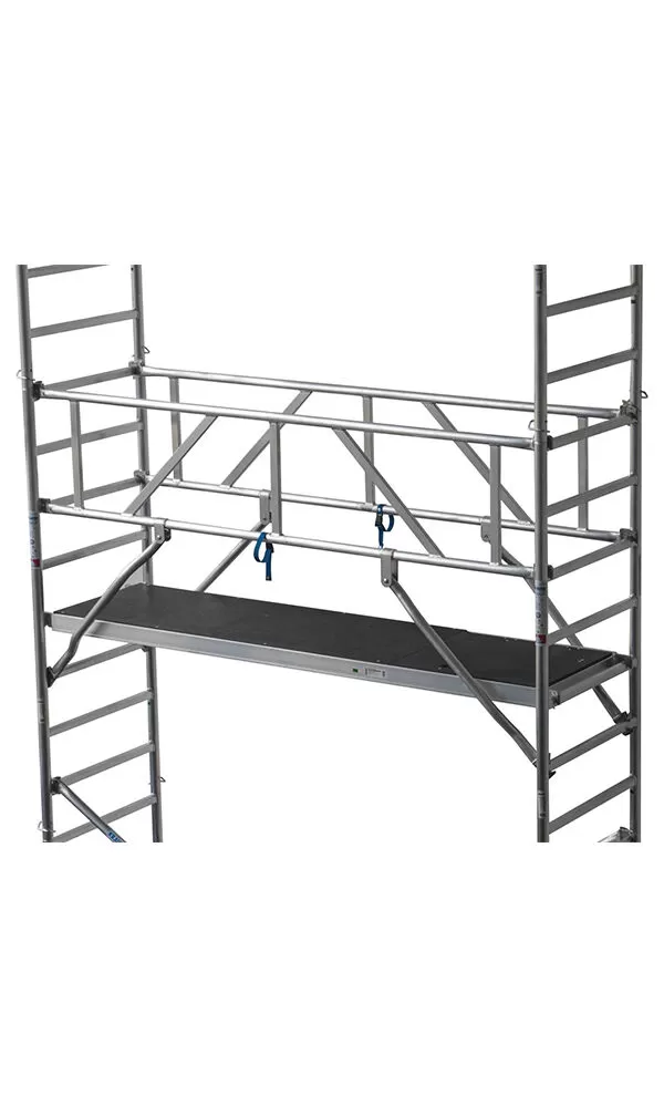 • Použitím stabilizátorů - opěrných výložných ramen (4 ks jsou v ceně této sestavy) je zajištěna vysoká stabilita lešení a redukován počet předepsaných stabilizačních 10 kg závaží