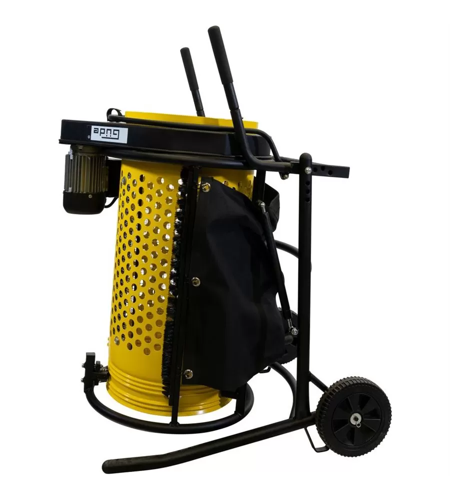 • Konstrukce: válcové síto s vodicími lištami (2), plynové vzpěry (2), stabilní trubkový stojan, držadla a pojezdová kola pro snadné přejíždění
