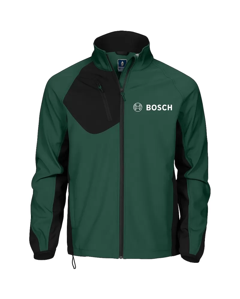 Softsheelová bunda velikost M forest green Bosch Praktická softshellová bunda Měkký materiál pro větší pohodlí Vnitřní kapsy Jedna náprsní kapsa na zip Boční kapsy na zip Vysoký límec Zip po celé délce Chránič brady v horní části zipu