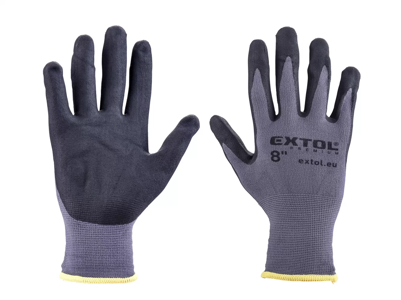 Rukavice nylonové, bezešvé, polomáčené v nitrilu, velikost 8' Extol Premium 8856680