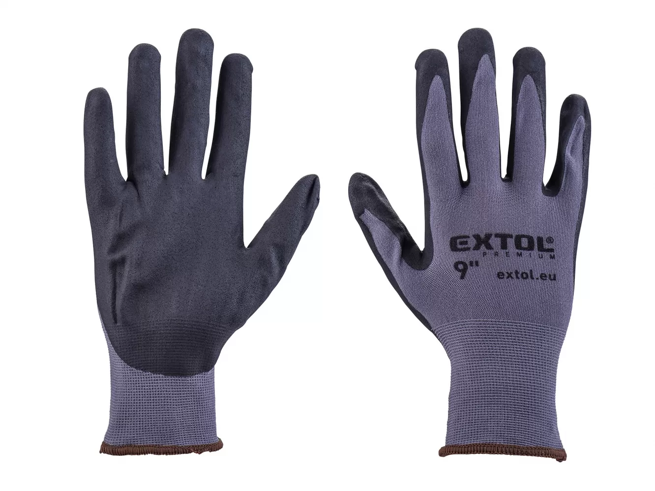 Rukavice nylonové, bezešvé, polomáčené v nitrilu, velikost 9' Extol Premium 8856681