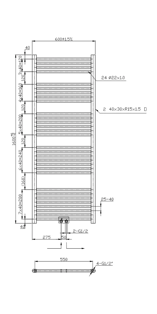 Otopné těleso chrom-rovné, středové připojení Novaservis 600/1600/RS,0