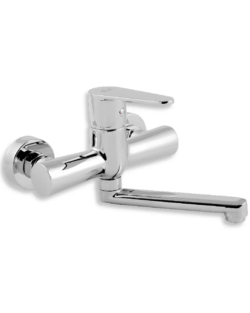 • Dřezová nástěnná baterie s roztečí 150 mm a elegantním otočným ramenem o délce 200 mm