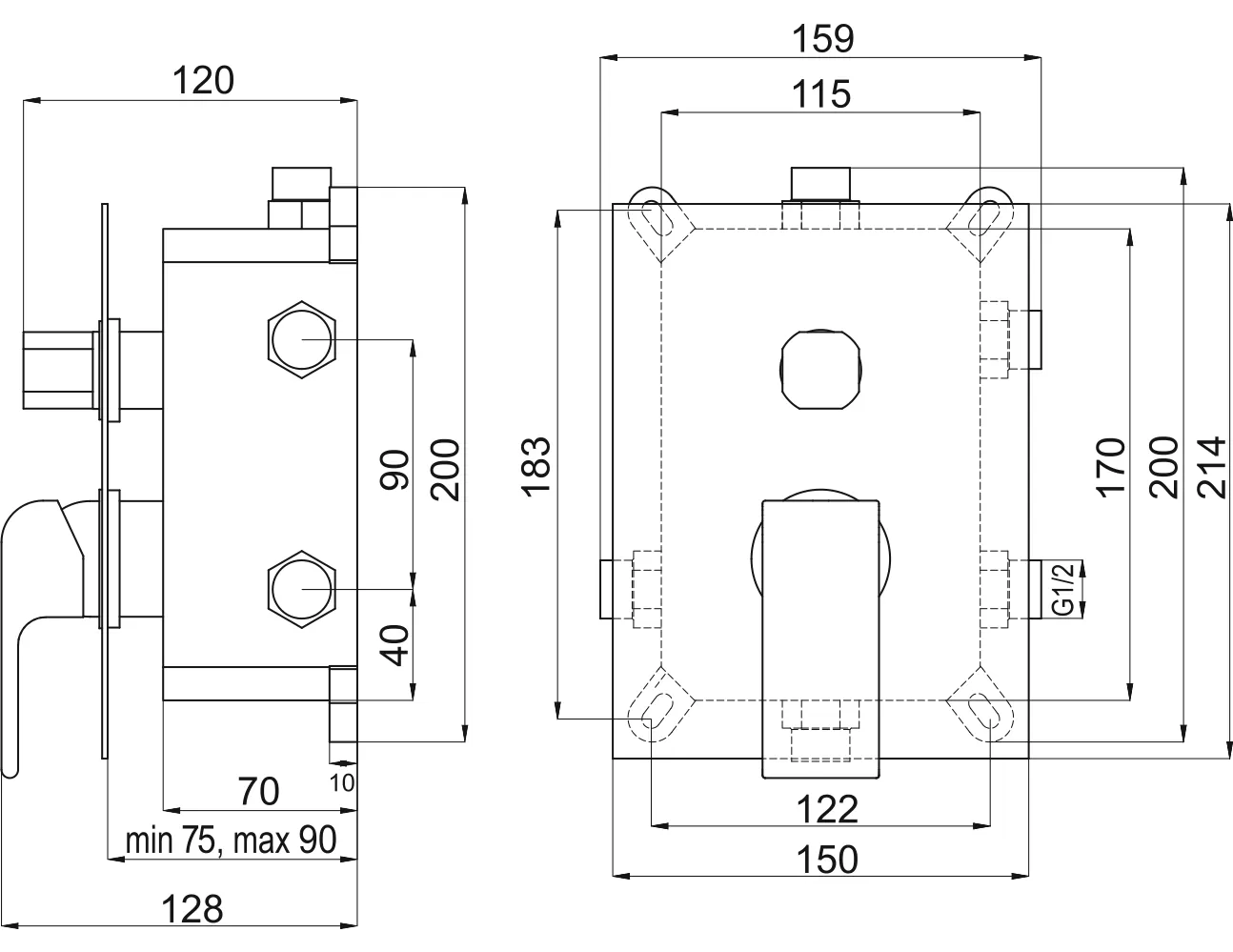 • Vanová a sprchová podomítková baterie s boxem a keramickým přepínačem pro 3 vývody
