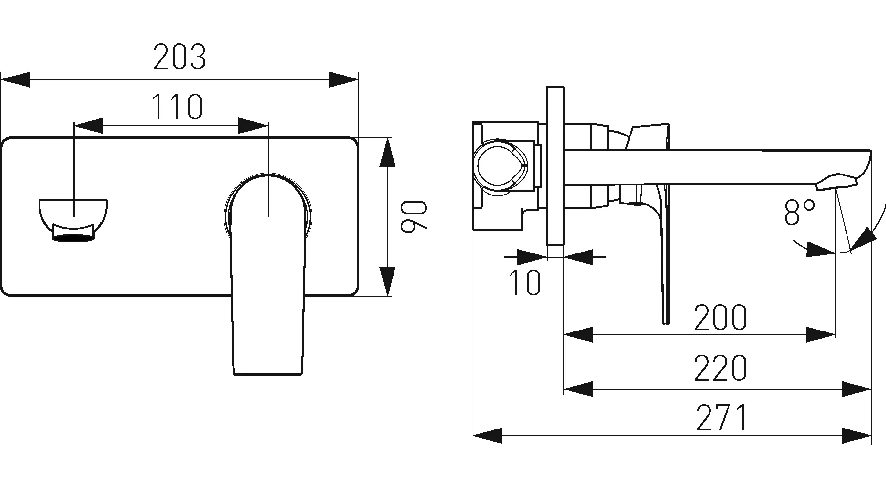 • Umyvadlová nástěnná podomítková baterie s délkou výtokového ramínka 220 mm