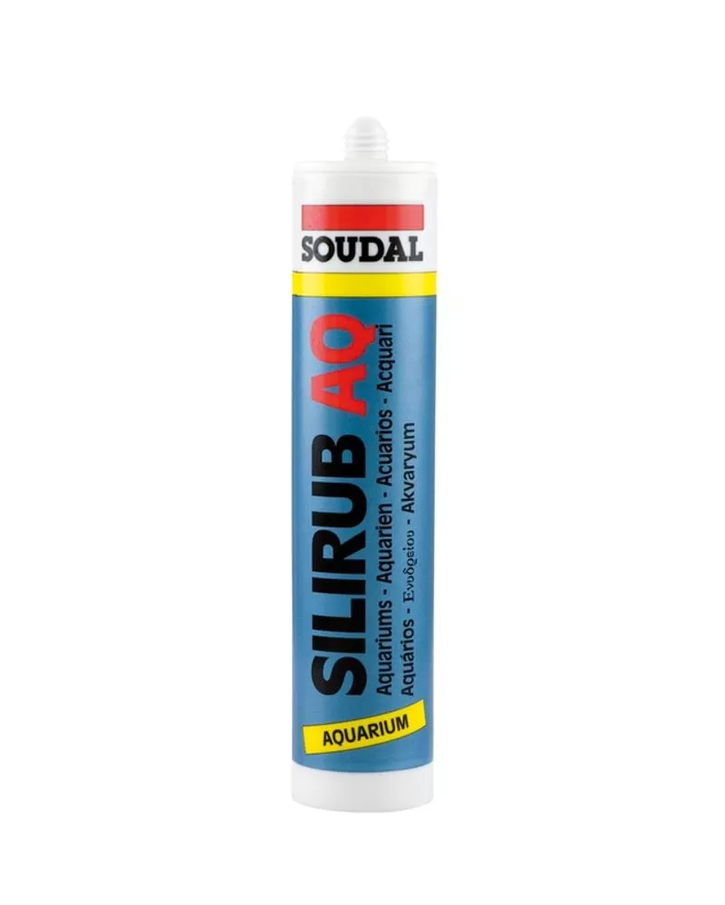 • Soudal Silirub AQ je vysoce kvalitní elastický jednosložkový lepící tmel na bázi silikonu určený k výrobě akvárií a terárií