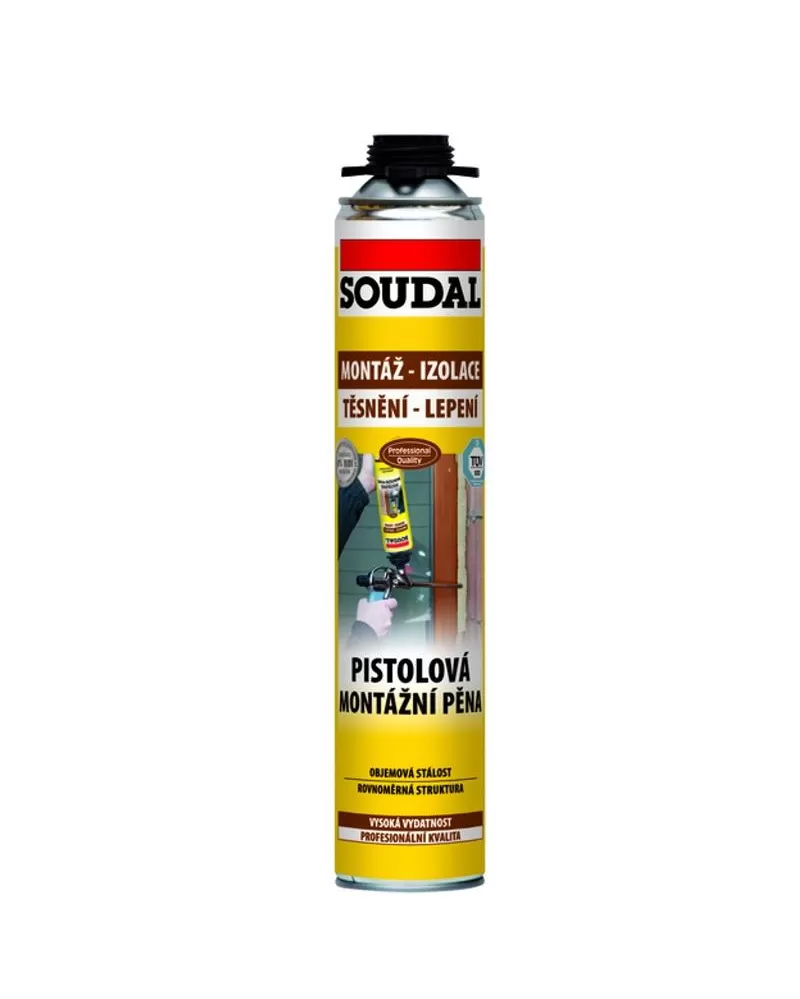 SOUDAL 750ml montážní pěna pistolová Vysoce kvalitní jednosložková polyuretanová montážní pěna s úpravou ventilové části… Celý popis