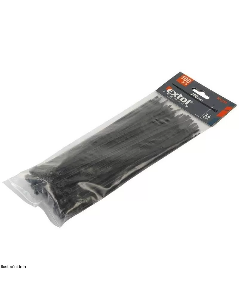 Stahovací pásky černé 540x7,6mm 50ks EXTOL PREMIUM 8856172 NYLON NORMY: EN 62275, UL94V-2 Celý popis
