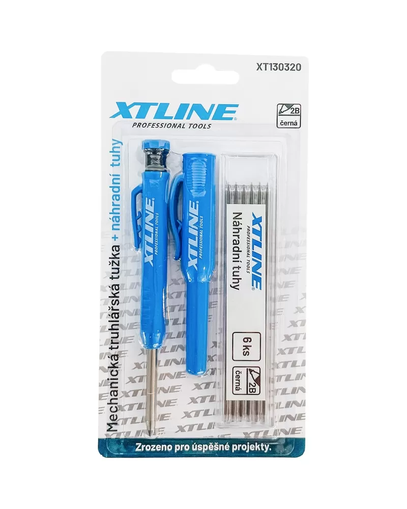 Mechanická truhlářská tužka 155 mm + náhradní tuhy 1bal/6ks XTline XT130320 Praktická sada náhradních tuh a tužky s mechanicky výsuvnou tuhou a… Celý popis