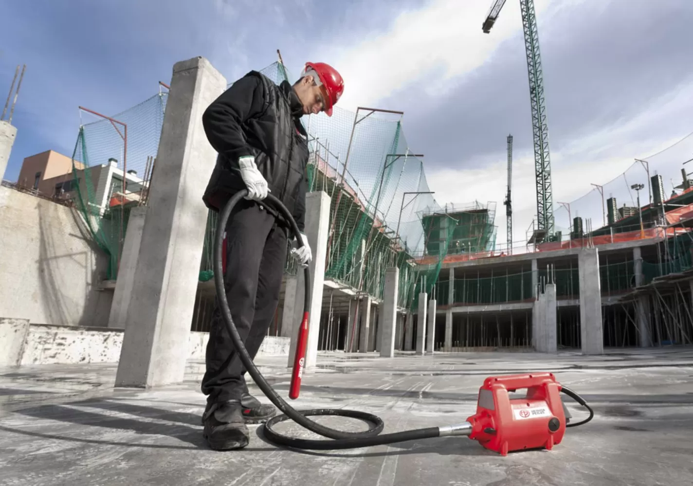 Motor chrání velmi odolný kryt. Dvojitá izolace motoru. Snadná výměna ohebné hřídele s vibrační hlavicí. Možnost použití vibrační hlavice až 57 mm. Pohonná jednotka váží pouze 6 kg.