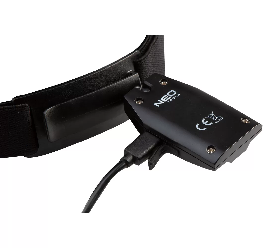 USB dobíjacia čelovka 180 lm COB LED + pohybový senzor NEO (ref. 99-069) je vybavená COB LED diódou so svetelným tokom 180 lumenov a výkonom 3 W. Svietidlo má funkciu zapnutia pohybového senzora a červeného svetla. Otočná hlava o 360 stupňov uľahčuje nastavenie osvetlenia. Telo je vodeodolné a spĺňa štandard IPX4 (ochrana proti striekajúcej vode z akéhokoľvek smeru). Je napájaný 3,7V Li-Ion batériou s kapacitou 500 mAh, ktorá je súčasťou balenia. Súčasťou balenia je čelenka, USB kábel a klip s háčikom.