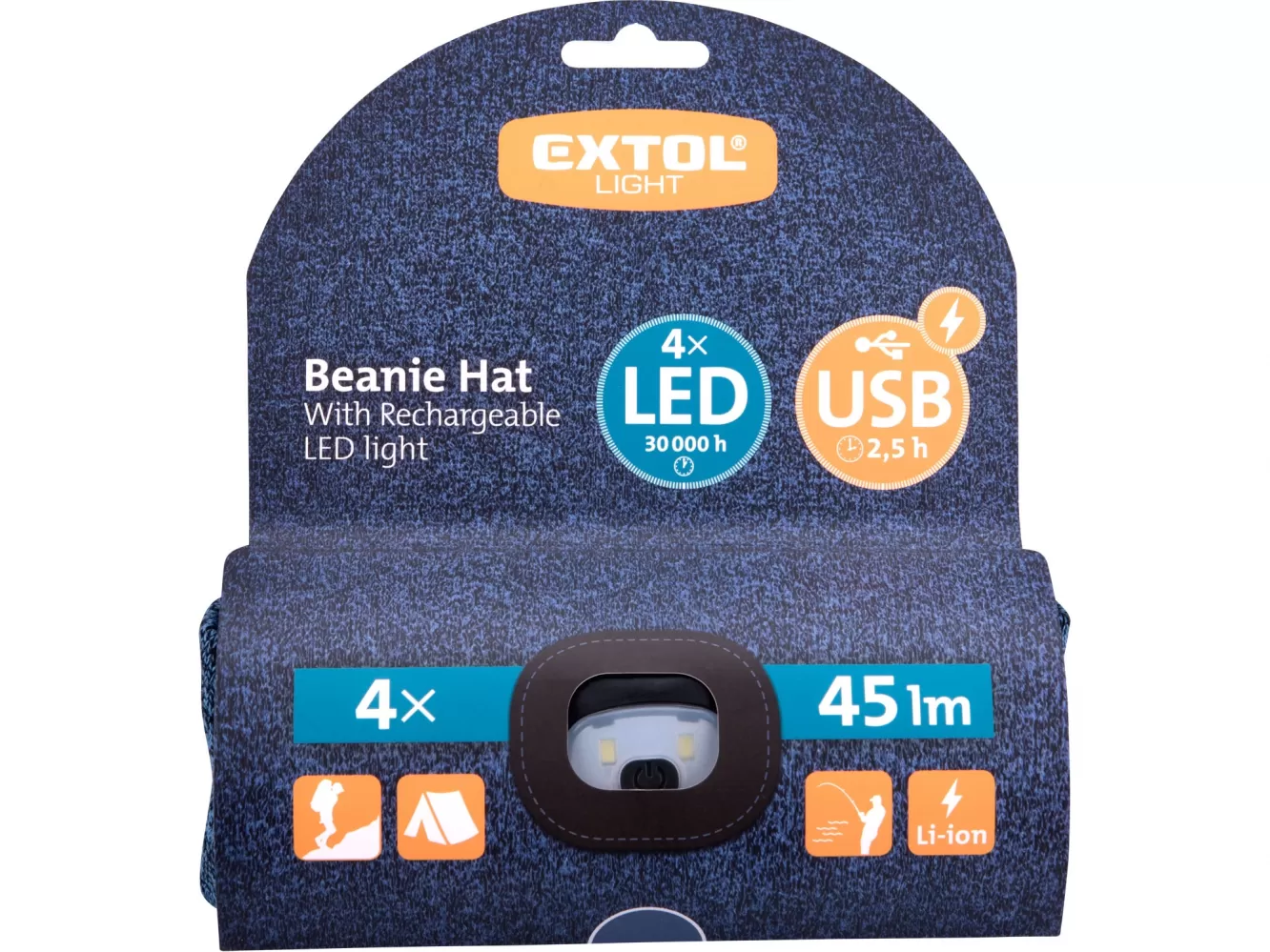 Čepice s čelovkou, modrá/černá - USB nabíjení EXTOL LIGHT 43463