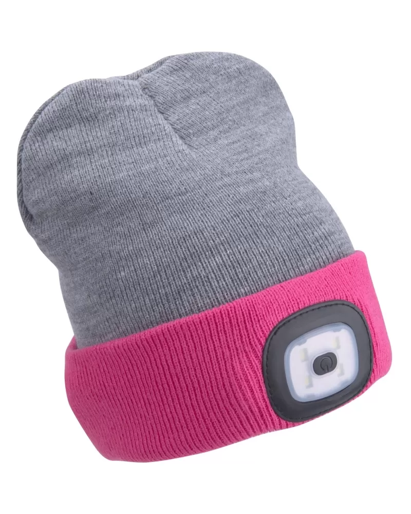 Čepice s čelovkou EXTOL LIGHT 43197 sv.šedá/růž, univerzální velikost, snadné dobíjení přes USB, pro vaši bezpečnost má čepice vzadu odrazku.