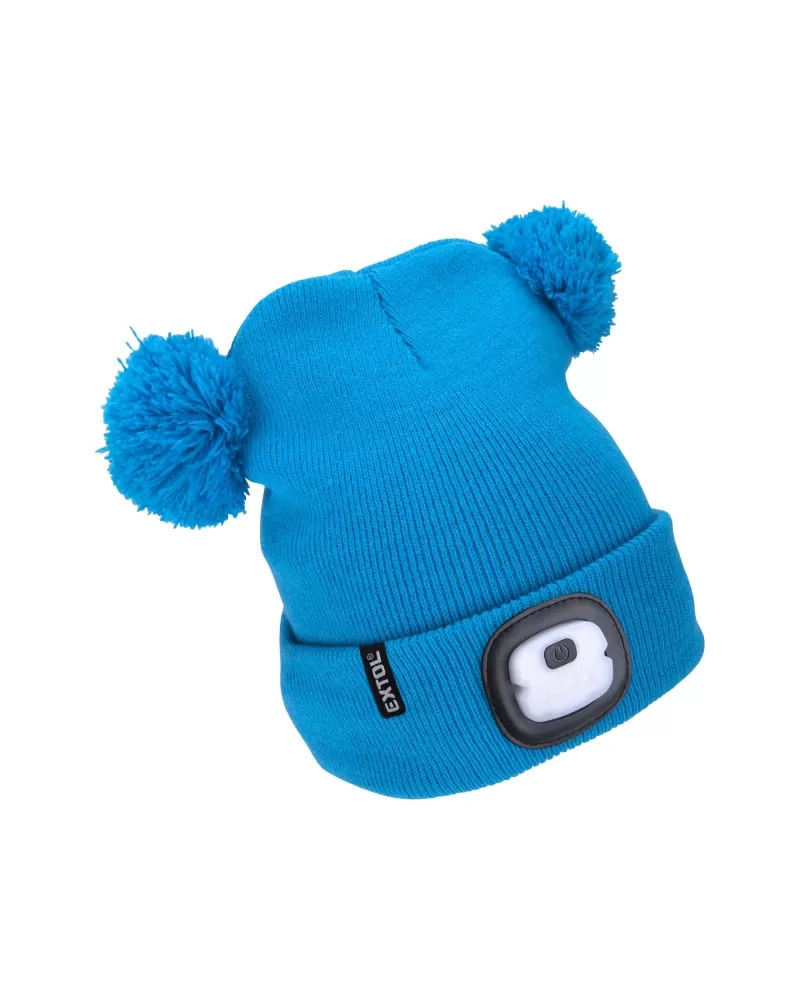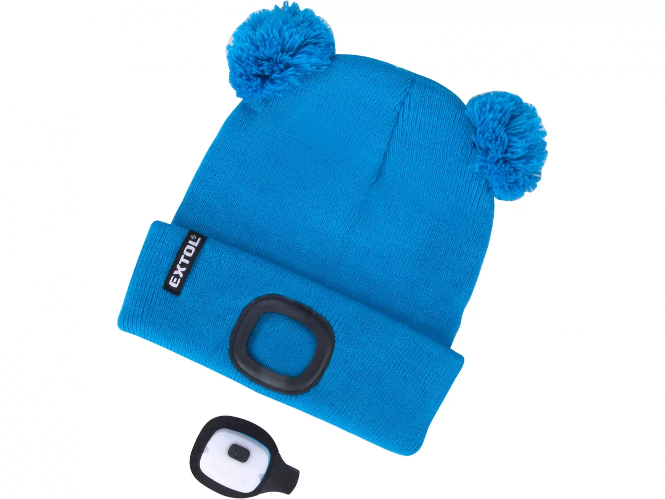 Dětská modrá čepice s čelovkou s bambulemi - USB nabíjení EXTOL LIGHT 43459