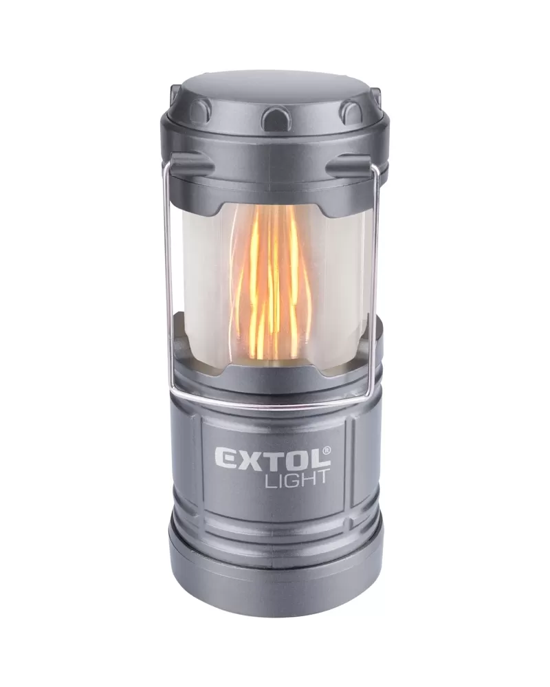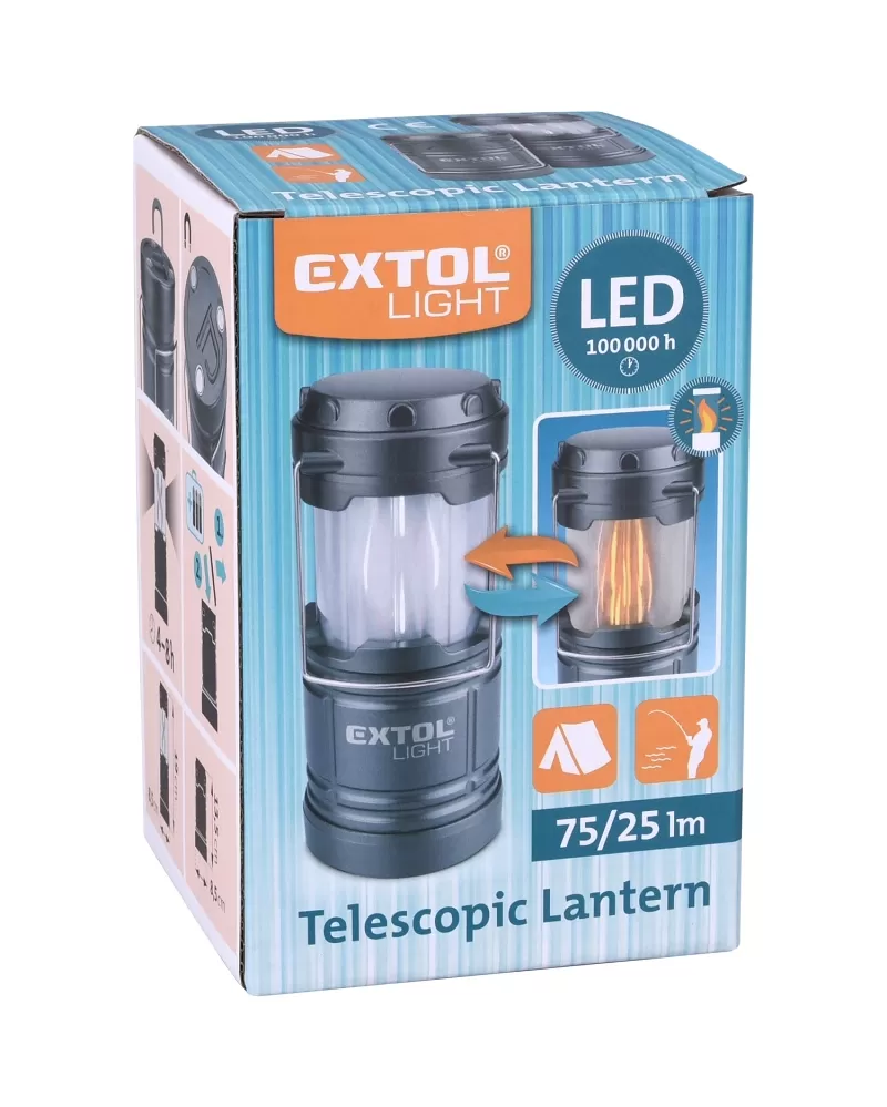 Teleskopická lucerna 75ml / 25lm LED EXTOL LIGHT 43115, svítilnu zapnete jednoduchým povytažením. Vhodné pro svícení při kempování, na chatě, v bytě atd., zajišťuje světlo s rozptylem 360°.