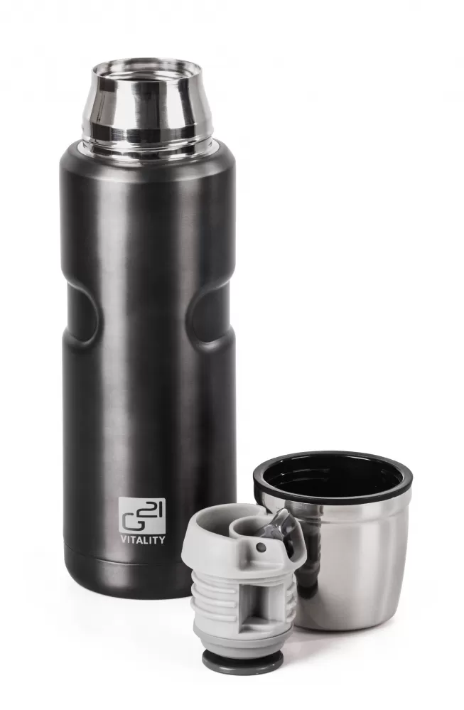 • Největší předností termosky G21 je kvalitní termoizolace. Termoláhev z nerezové oceli má dvojité stěny a dokonale těsnící víčko s vnějším krytem. Nápoje tak udrží v požadované teplotě opravdu dlouho – horké až 12 hodin, studené až 24 hodin.