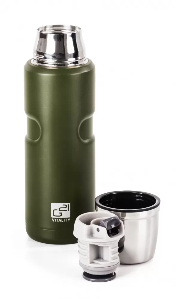 • Největší předností termosky G21 je kvalitní termoizolace. Termoláhev z nerezové oceli má dvojité stěny a dokonale těsnící víčko s vnějším krytem. Nápoje tak udrží v požadované teplotě opravdu dlouho – horké až 12 hodin, studené až 24 hodin.