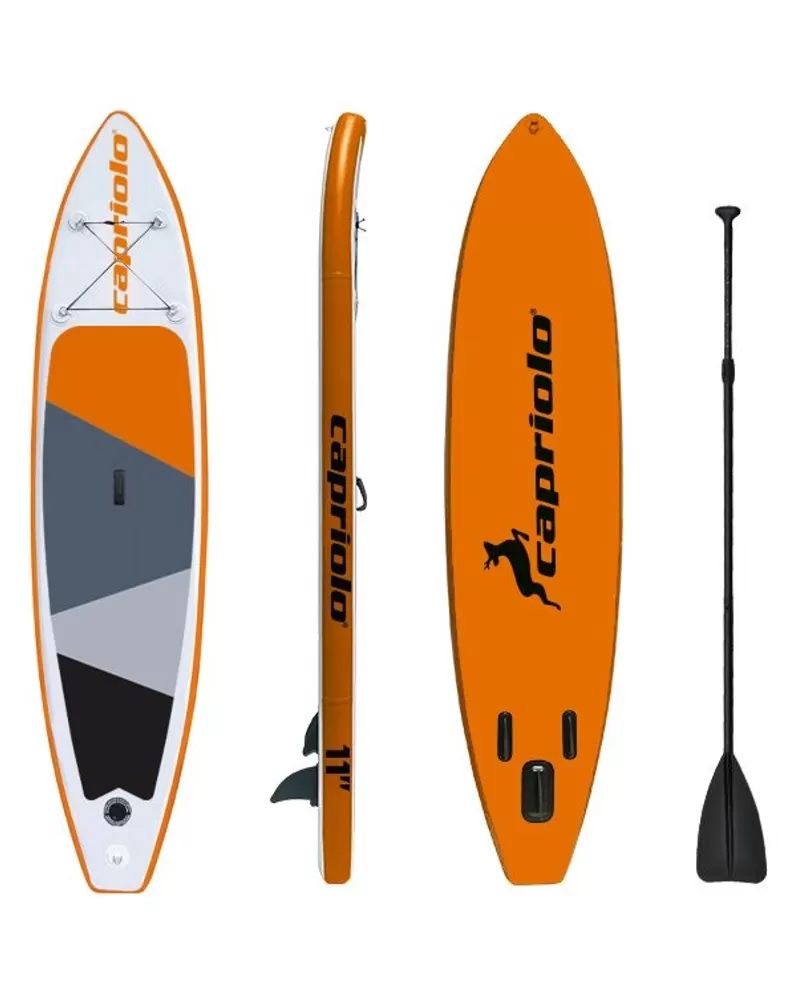 Pořiďte si Paddleboard Capriolo Orange a zlepšete svojí fyzickou kondici, balanc a koordinaci. Prkno je vhodné pro všechny uživatele všech úrovní dovedností. Jeho stabilita je skvělá. Paddleboarding, někdy také Stand Up Paddle (zkráceně SUP), patří mezi velice oblíbené vodní sporty, při kterém člověk rovnoměrně zapojuje celé tělo. Celoplošný potisk zlepšuje viditelnost prkna v jakémkoliv prostředí, což výrazně snižuje jeho ztrátu.