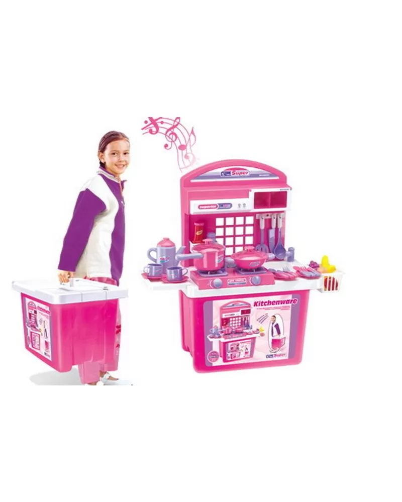 Hračka G21 Dětská kuchyňka s příslušenstvím v kufru růžová