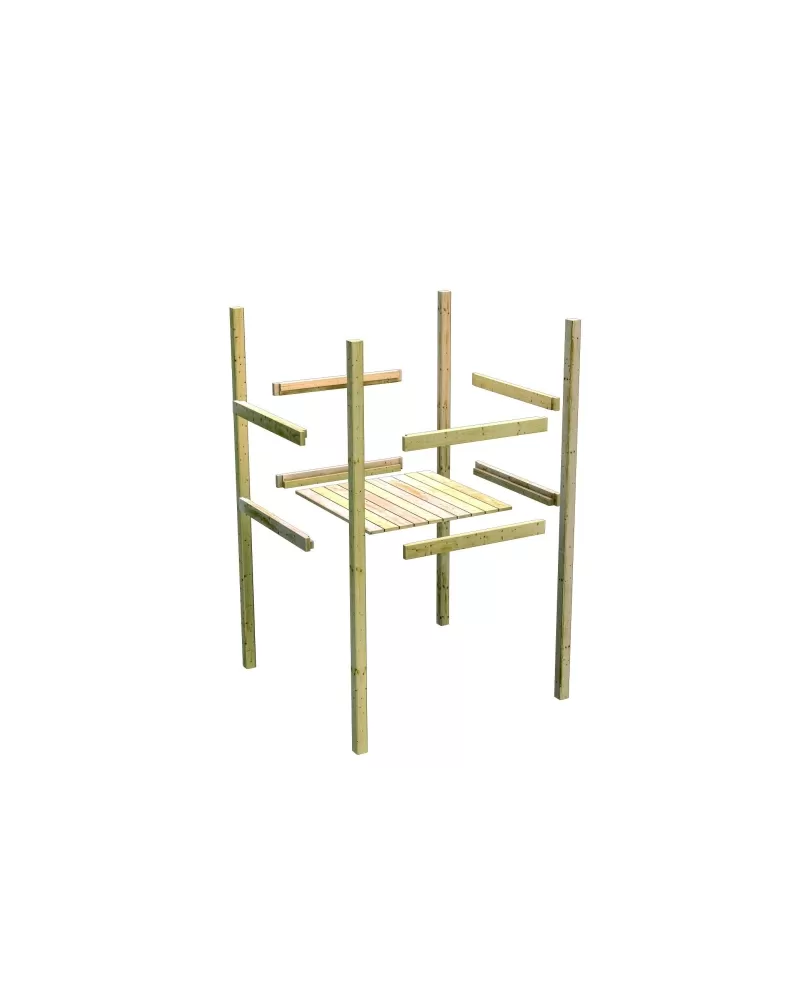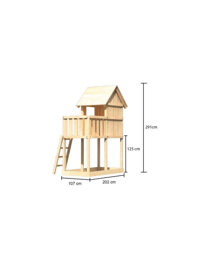 • Díky výšce plošiny nabízí hřiště KARIBU FRIEDA dětem dokonalý výhled na zahradu. Sedlová střecha je vyrobena z dřevotřískových desek. Hřiště je standardně vybaveno robustním dřevěným žebříkem se 4 příčkami a pískovištěm pod věží. I tento výrobek má samozřejmě certifikát TÜV Nord ověřující bezpečnost výrobku (GS) podle DIN EN 71-1, DIN EN 71-3, DIN EN 71-8 a AfPS GS 2014.