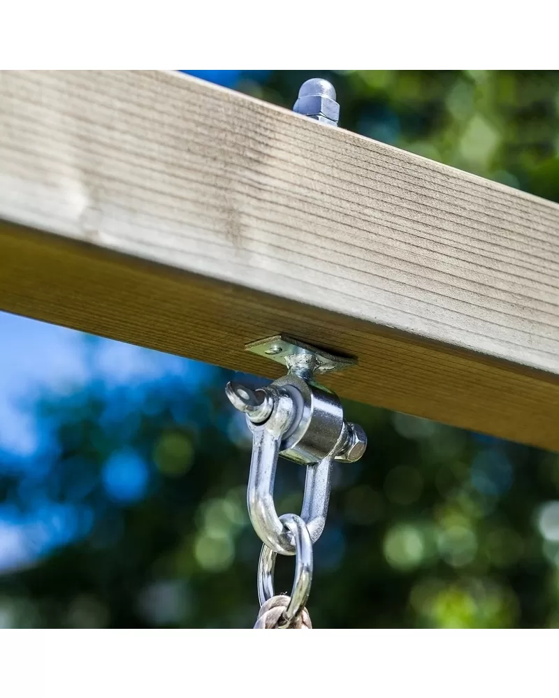 Veškeré komponenty jsou vyrobeny z robustního plastu, odolného kovu a borovicového dřeva, které je povrchově ošetřeno proti nepříznivým vlivům počasí.