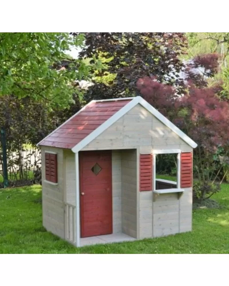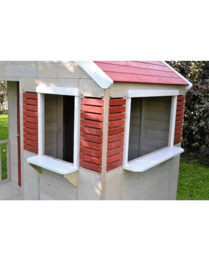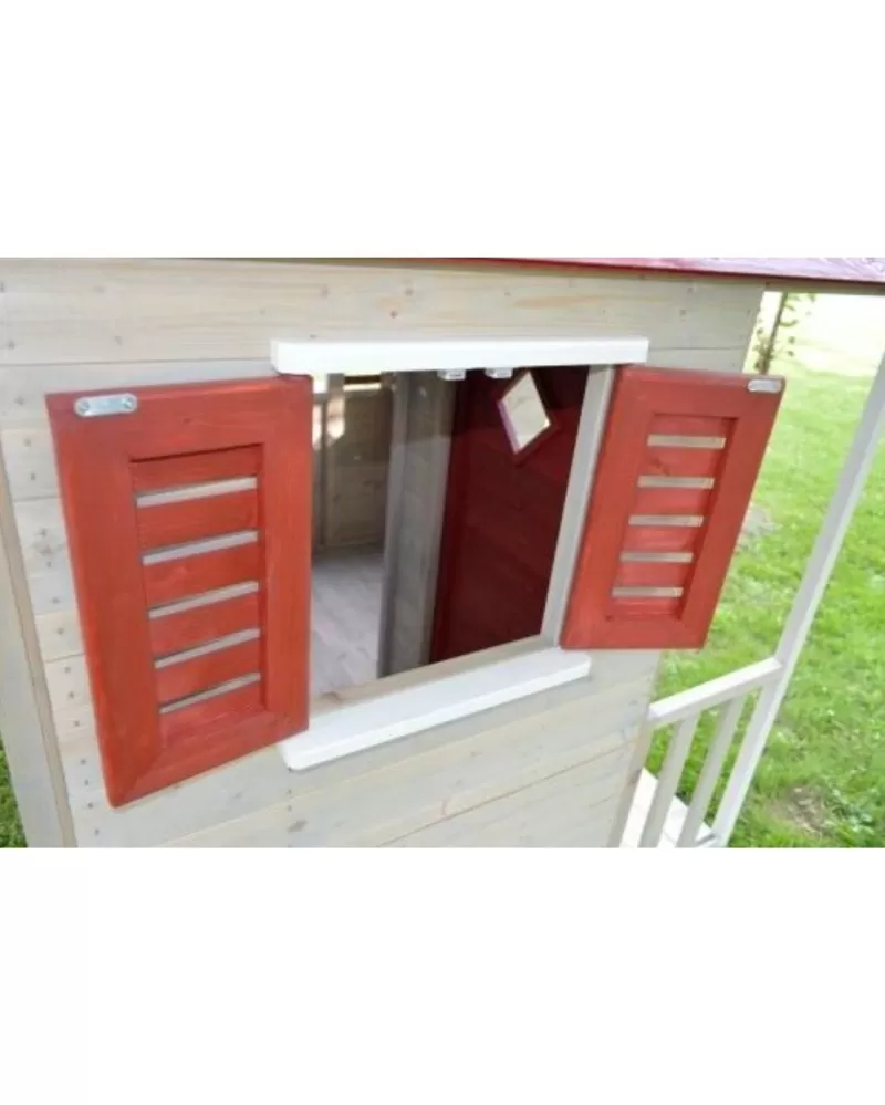 • Dětský dřevěný domeček Letní vila s krytou verandou disponuje i podlahou ve výbavě