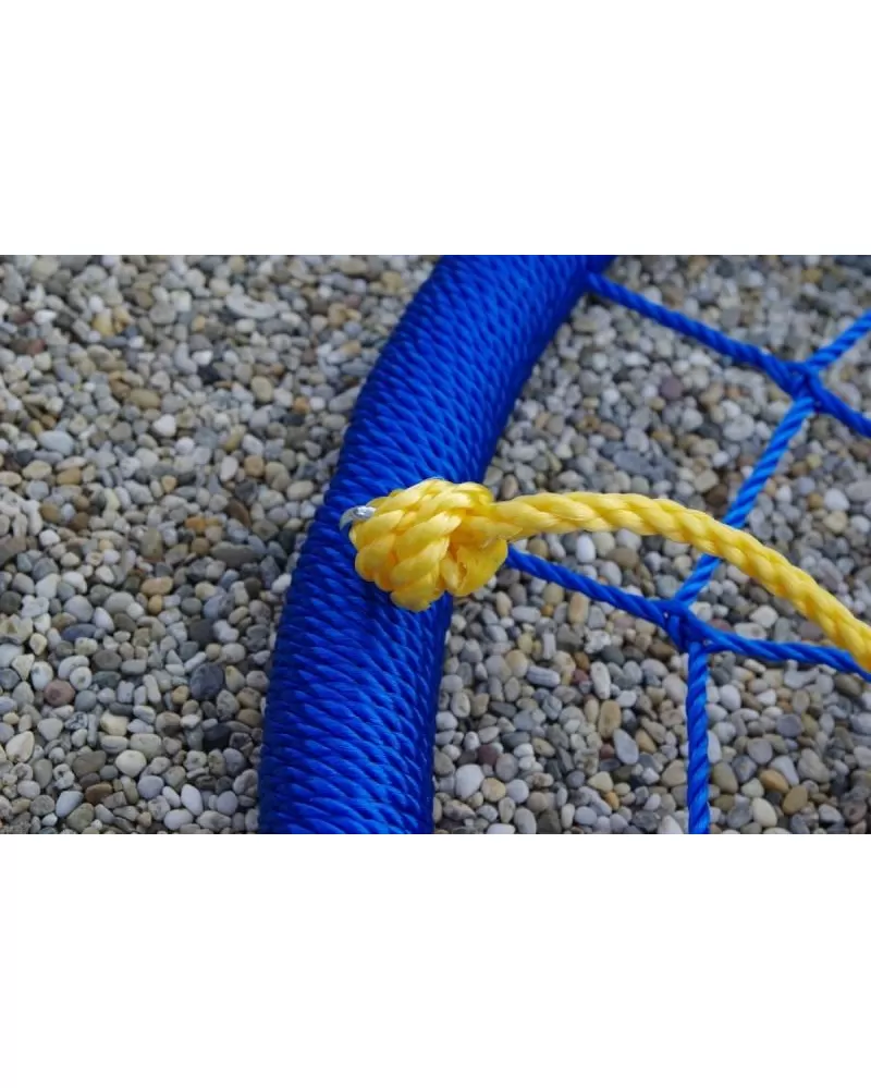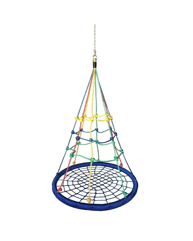 Závěsná houpačka ve tvaru kruhu je svým průměrem 100 cm a nosností až 150 kg ideální nejen pro děti, ale i dospělé. Velká sedací plocha houpačky nabízí volnost při houpání i dostatečný prostor pro lenošení.  Houpačka je zavěšena na 4 délkově nastavitelných lanech, která jsou zakončena kovovými kroužky pro zavěšení na nosnou konstrukci.