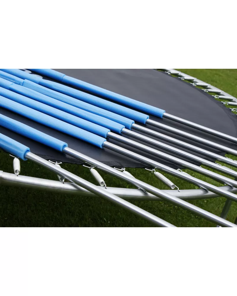 • nohy trampolíny - tzv. "U" nohy: 4 ks, uvnitř a vně pozinkované 38 mm × 1,5 mm (silná konstrukce nohou trampolíny poskytuje dostatečnou stabilitu)