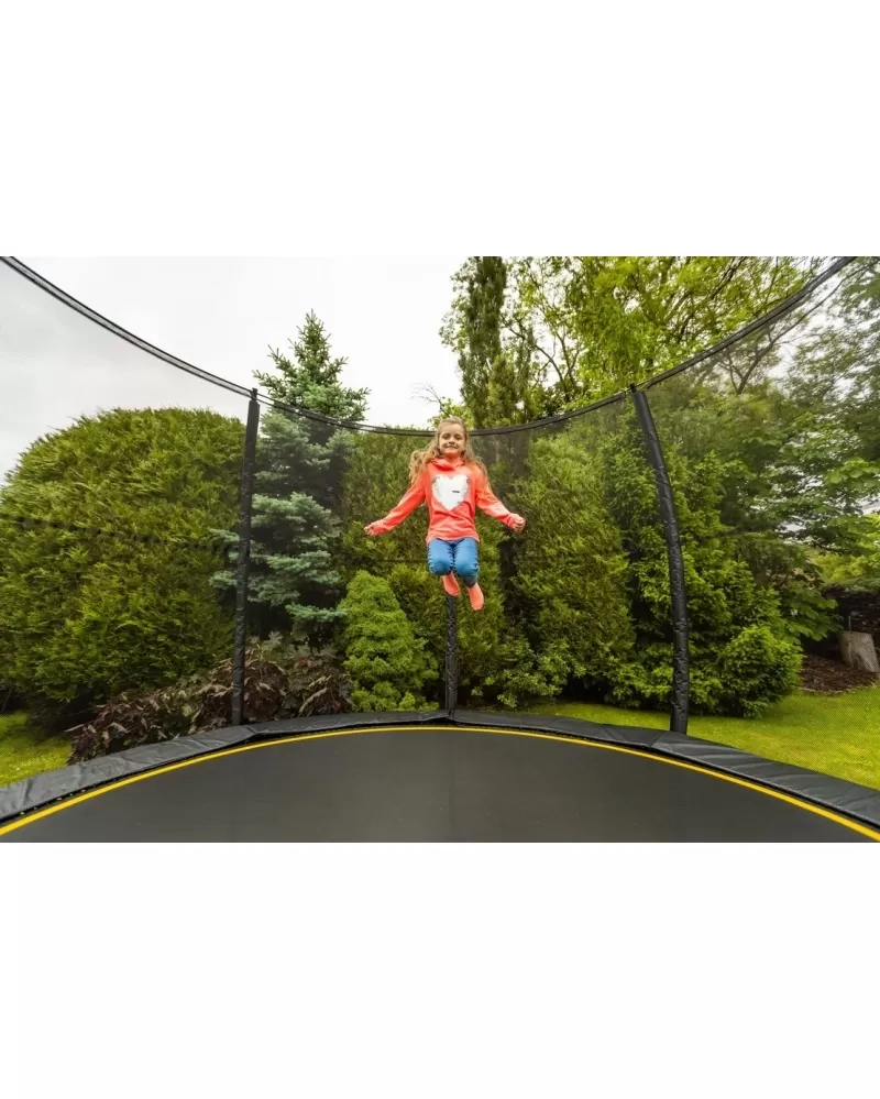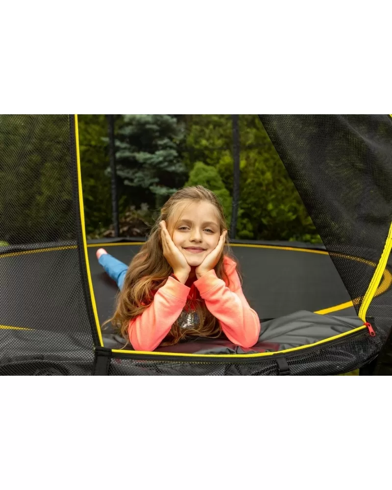 Ochrannou síť najdete přímo v balení, nemusíte si ji dokupovat zvlášť. Ochranná síť na vnější straně trampolíny je pružná a zároveň výborně drží tvar. Tyče jsou obaleny ochranným návlekem z měkčené pěny. Nohy trampolíny jsou samostatné a zvyšují stabilitu celé trampolíny. Zvenku i zevnitř jsou galvanizované trubky rámu.