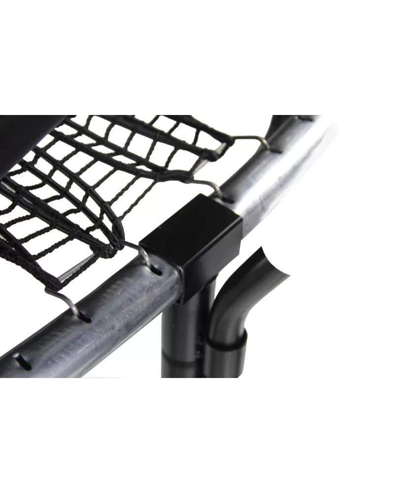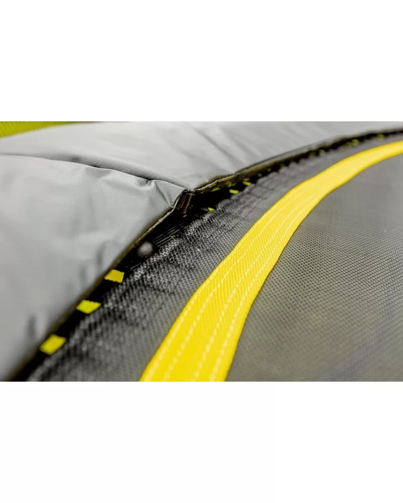 Nová technologie upevnění skákací plochy do rámu. Elastický výplet namísto pružin je bezpečnější, zvyšuje flexibilitu odrazové plochy a způsobuje měkčí dopad