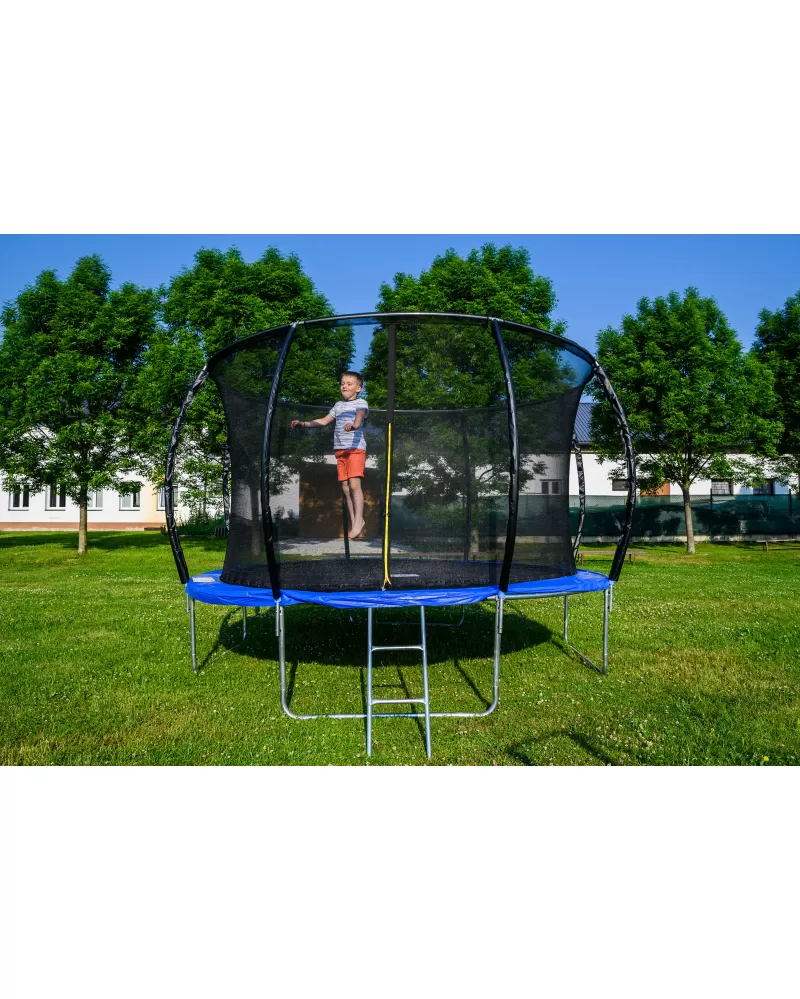 • Ochranná síť trampolíny je z vnitřní strany konstrukce, skákání na trampolíně je tak bezpečnější