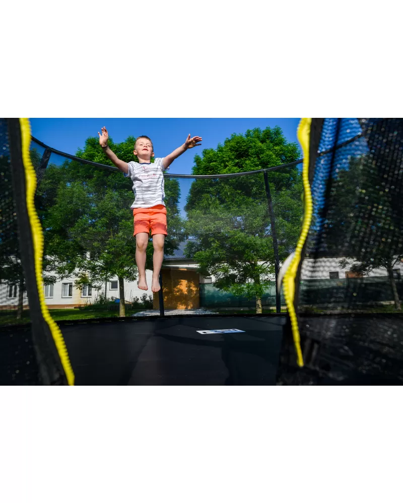 • Ochranná síť trampolíny je z vnitřní strany konstrukce, skákání na trampolíně je tak bezpečnější