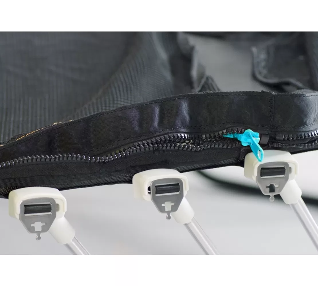 Vnitřní ochrannou síť najdete přímo v balení, nemusíte si ji dokupovat zvlášť. Vnitřní ochranná síť je bezpečnější než vnější síť - brání přístupu skákajícího do části s pružinami. Mezera mezi ochrannou sítí a skákací plochou trampolíny je vyplněna zipem. Aktuálně je to nejbezpečnější řešení spoje na trhu. Ochranná síť brání vypadnutí. Tyče jsou obaleny ochranným návlekem z měkčené pěny. Nohy trampolíny jsou samostatné a zvyšují stabilitu celé trampolíny. Spojení tyčí nohou trampolíny a sítě je jištěno speciálními sponami.
