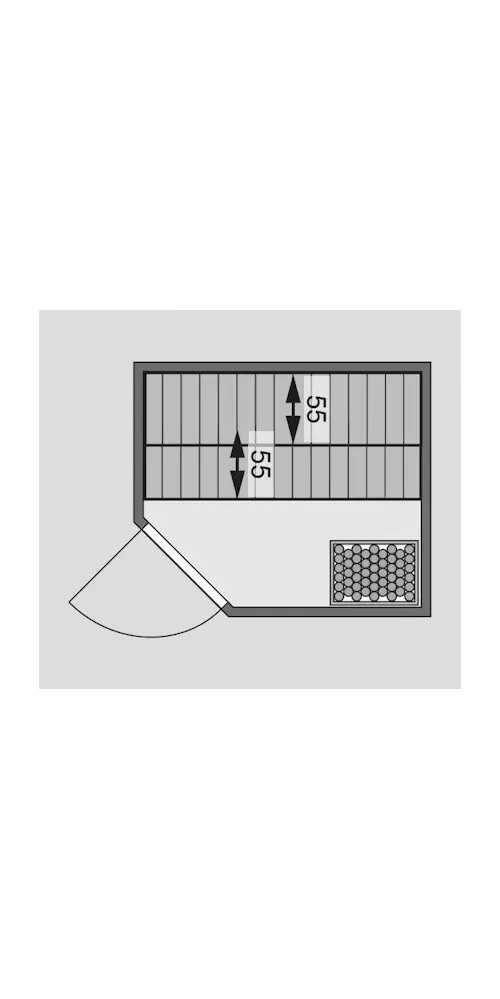 Sauna nemá vlastní podlahu a je nutné ji umístit výhradně v místnosti s odpovídající podlahovou krytinou, ideálně dlažbou. Saunu dodáváme ve verzi bez stropní římsy (profilu) u stropu, ve kterém může být instalováno dodatečné LED osvětlení.