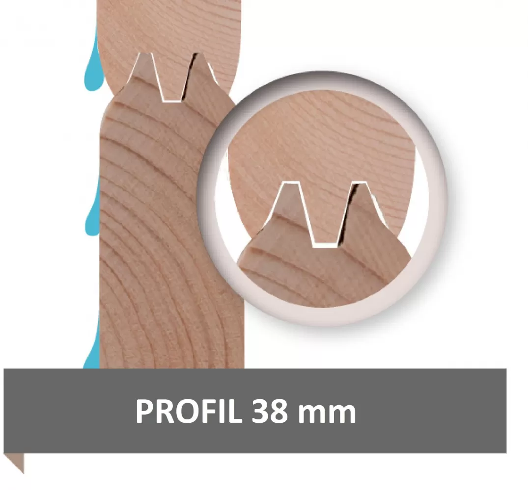 Pozor, balík s materiálem není vodotěsný. Folie chrání dřevo jen proti znečištění. Skladujte proto stavební sadu až do konečné montáže v suchu, ne přímo položenou na zemi, chráněnou proti vlivům počasí (vlhkost, slunce atd.). Neskladovat ve vytápěném prostoru!