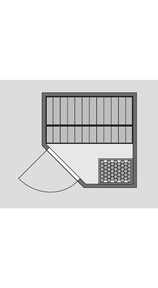 Sauna nemá vlastní podlahu a je nutné ji umístit výhradně v místnosti s odpovídající podlahovou krytinou, ideálně dlažbou. Saunu dodáváme ve verzi bez stropní římsy (profilem) u stropu včetně LED osvětlení 3 x 7,5 W.
