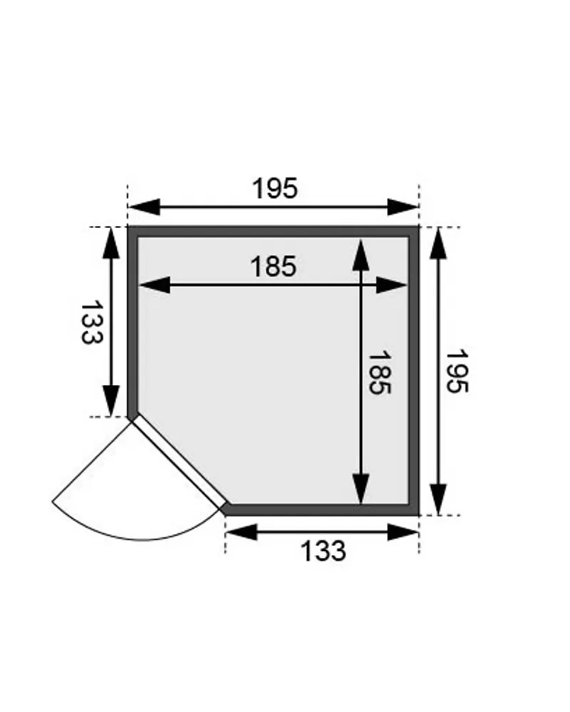 • Má rozměr 195 x 195 cm s rohovými dveřmi.