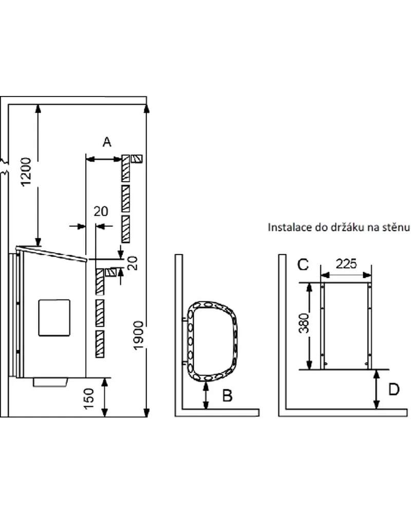 • Prostor pro lávové kameny: 18–22 kg (kameny nejsou součástí dodávky).