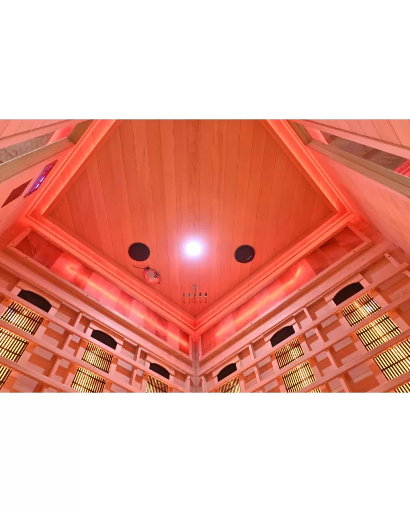 Její integrovanou součástí je podsvícení barevnými LED pásky. Přičemž podsvícení je sjednoceno se světelnou terapií instalovanou v infrasauně.