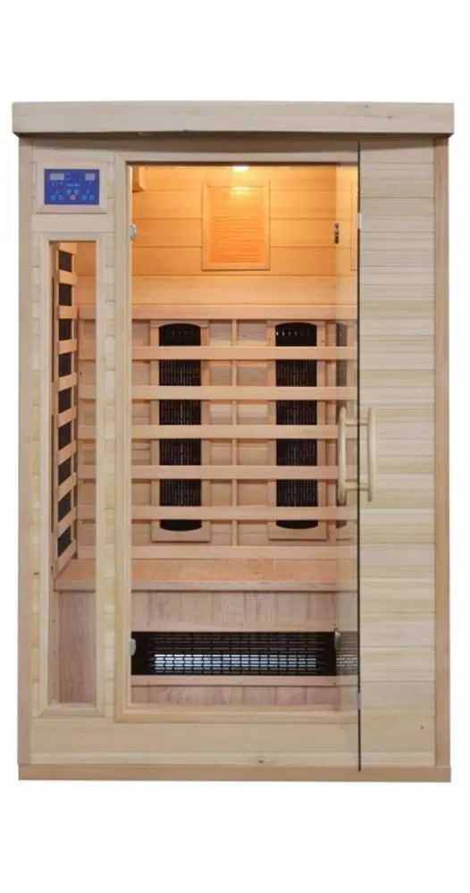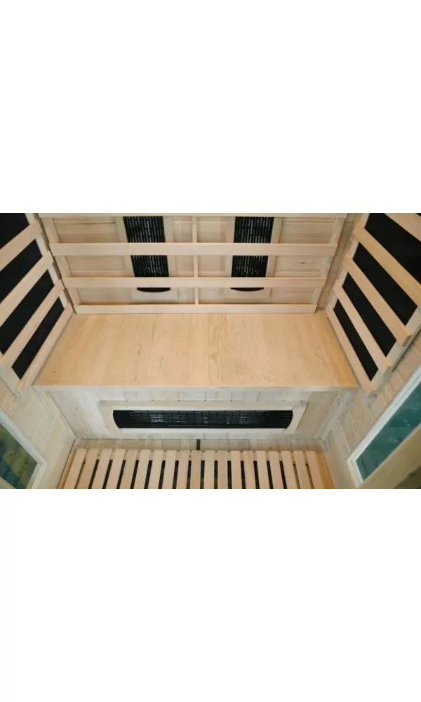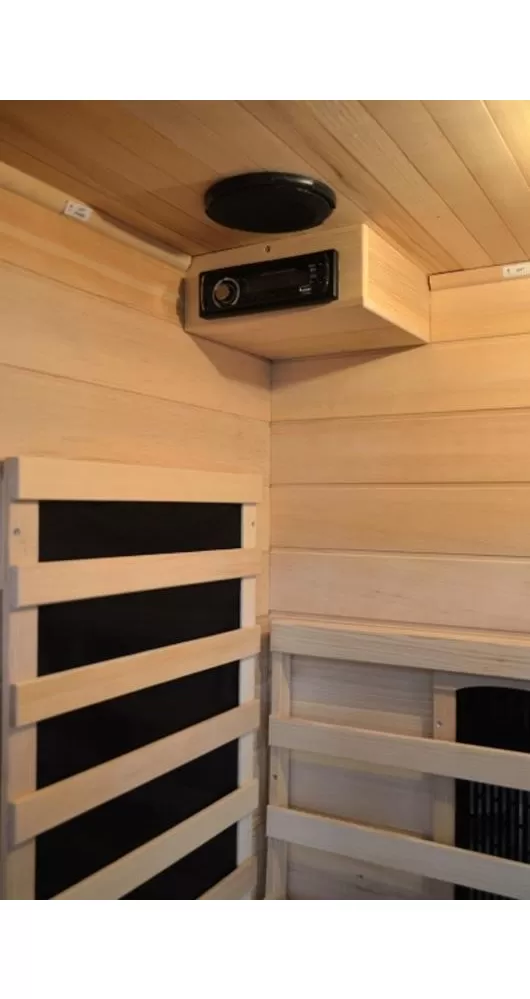 Infrasauna DeLUXE 2220 CR/CB, keramická topidla svým typickým sálavým teplem rychleji vyhřejí prostor sauny a karbonová topidla zajistí vyšší podíl infračervených vln.