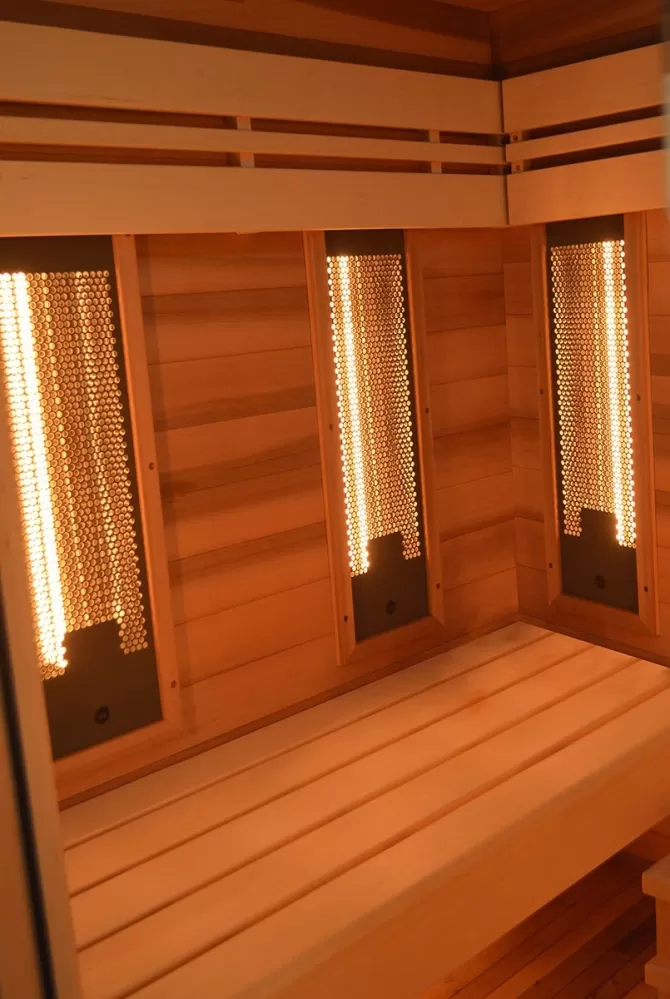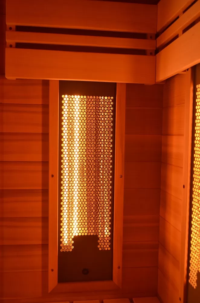 • Teplo v infrasauně zajišťuje 8 redlight / magnesiových topidel ve stěnách a 1 karbonové topidlo v podlaze.