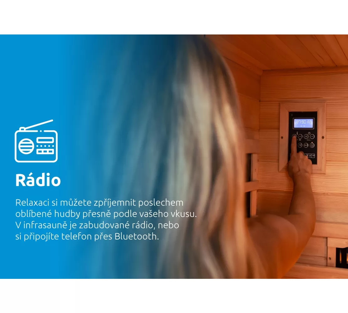 • Pocení a detoxikace probíhá již při 45-50° C. Díky tomu je proces infrasaunování přístupnější a vhodný i pro děti.
