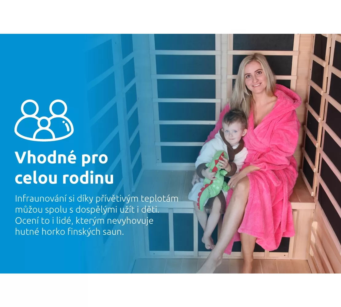 • Pocení a detoxikace probíhá již při 45–50°C, vhodné i pro děti.