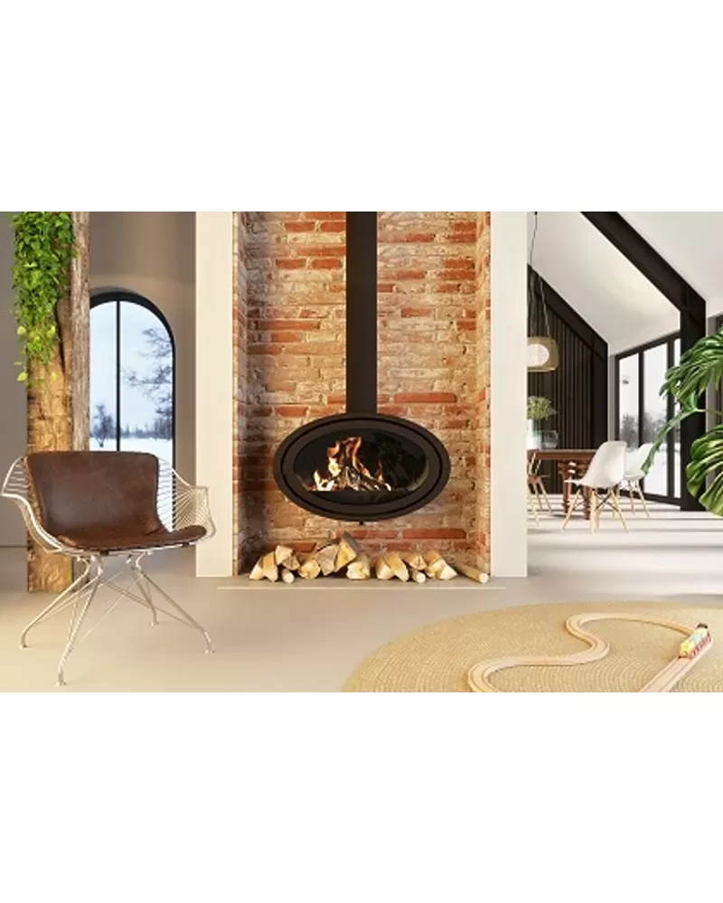 Díky svému velkému oválnému tvaru má tento designový krb od Dik Geurts jedinečný vzhled. Díky tomuto tvaru máte krásný výhled na hořící dřevo. Intenzitu hoření lze snadno regulovat jedním posuvným táhlem. Tmavý antracitový vermikulit uvnitř zajišťuje optimální a čisté spalování.