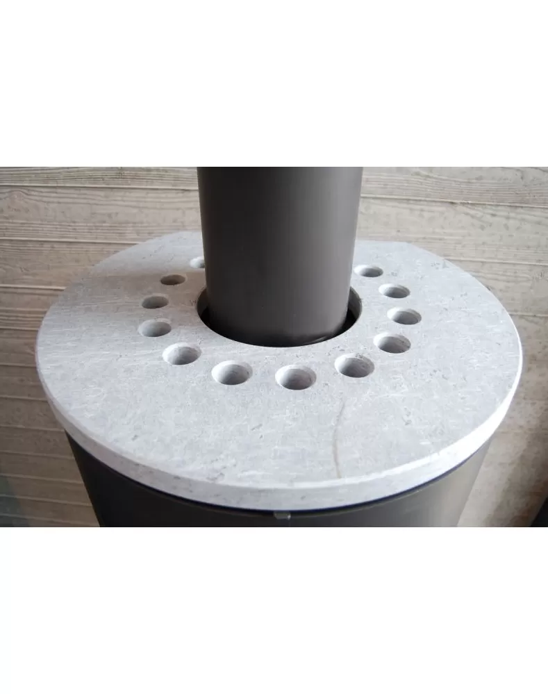 • Na horní část krbových kamen je možné pořídit kamennou desku (mastek nebo pískovec), fotografie níže v galerii. Tyto světlé kameny tvoří krásný kontrast s černým pláštěm kamen.