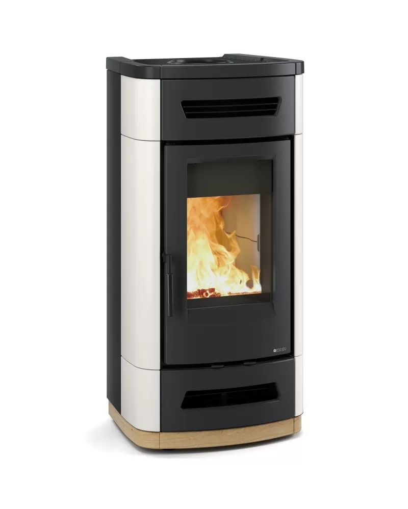 Krbová kamna bílá Nordica Oriana Maiolica Obklad v bílé lesklé keramice Spodní sokl a madlo kličky z přírodního dřeva Možnost foukání… Celý popis