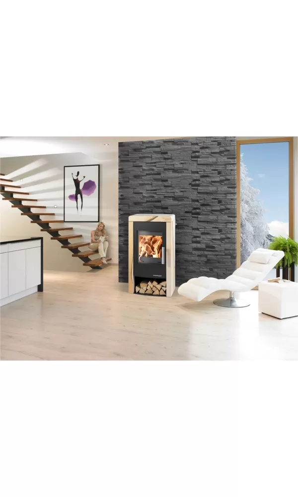 Krbová kamna Pinerolo nabízí pod masivním obkladem z přírodního kamene (pískovec Woodstone Prestige, nebo mastek Speckstein), pořádnou dávku moderní techniky. Kamenný obklad má schopnost akumulace. Příjemné teplo si tak můžete užívat ještě dlouho po vyhasnutí ohně.