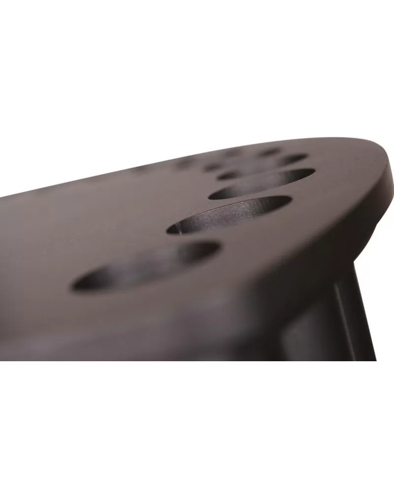 Krbové náradie Aduro Baseline 4-dielna krbová súprava v čiernej farbe s rukoväťami z nehrdzavejúcej ocele, stojan potiahnutý čiernou umelou kožou s bielym prešívaním po obvode Aduro Cuero – obsah sady čepel metla bagr kliešte
